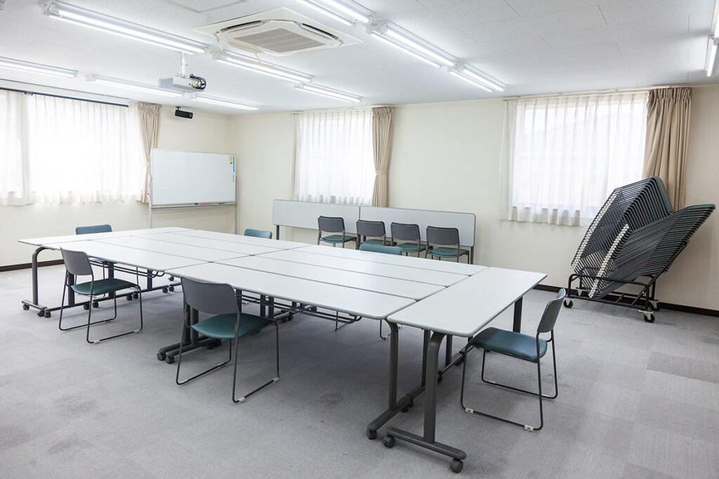 交流の場として使用していただいています。大型液晶プロジェクターなどOA機器もそろっていますので、